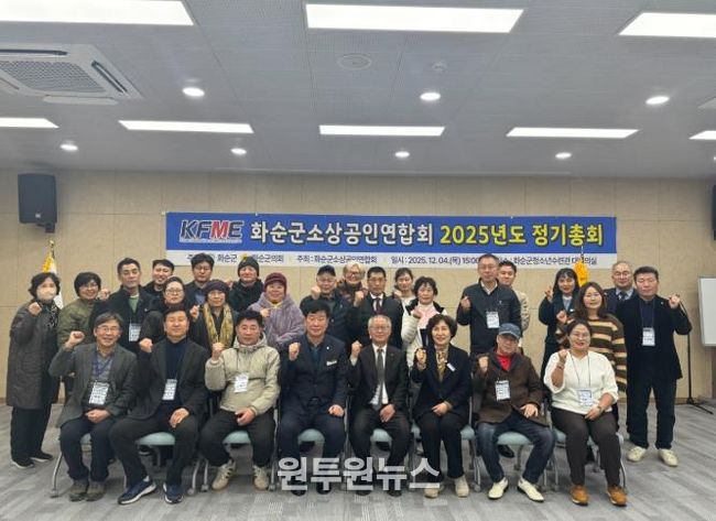 (원투원뉴스) 화순군소상공인연합회는 지난 4일 2025년도 사업을 결산하고 2026년도 사업계획을 보고하는 2025년 제3차 화순군소상공인연합회 정기총회를 개최했다고 밝혔다.
