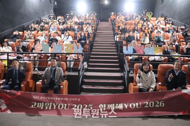 (원투원뉴스) 경산시장애인종합복지관은 4일 CGV경산점에서 자원봉사자 및 후원자 130여 명이 참석한 가운데 ‘2025 경산시 장애인복지관 감사의 날’ 행사를 성황리에 개최했다.