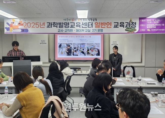 (원투원뉴스) 경상북도성주교육지원청은 2025년 12월 4일 성주과학발명교육센터에서 관내 교사·교직원을 대상으로 ‘퍼스널 향수 및 디퓨저 제작 연수’를 운영했다. 이번 연수는 향의 조향 원리를 기반으로 체험형 발명 교육을 이해하고, 교실 수업에 적용 가능한 메이커 활동 방안을 탐색하기 위해 마련됐다.