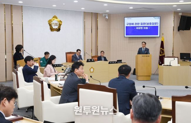 (원투원뉴스) 국강현 광산구의원(진보당, 송정1·2동·도산동·어룡동·삼도동·동곡동·본량동·평동)이 5일 제301회 광산구의회 정례회 제2차 본회의에서 급격히 성장하는 선운지구의 인구 변화에 걸맞은 공공 인프라 확충과 광산구 스쿨존 단속카메라 미설치 문제에 대하여 구정질문을 펼쳤다.