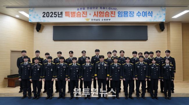 (원투원뉴스) 전남소방본부(본부장 주영국)는 12월 5일 전남소방학교 인재관 대강당에서 특별승진 및 시험승진에 대한 임명장 수여식을 개최했다.