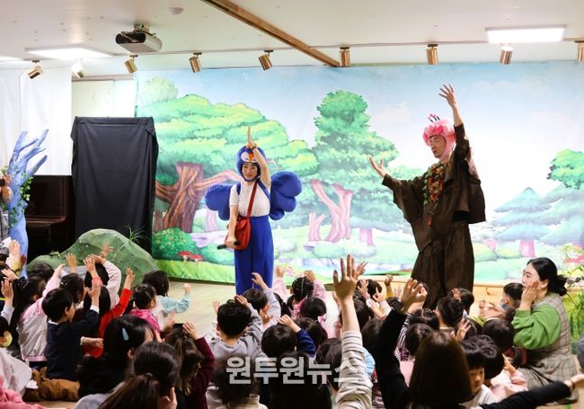 특히, 고깔모자와 밧줄을 활용한 산 오르기 체험, 꽃잎과 바람을 표현하는 참꽃 나무 놀이, 대형 천을 이용한 비와 물결 장면 체험 등 오감을 자극하는 활동들이 어린이들의 큰 관심을 끌었다.