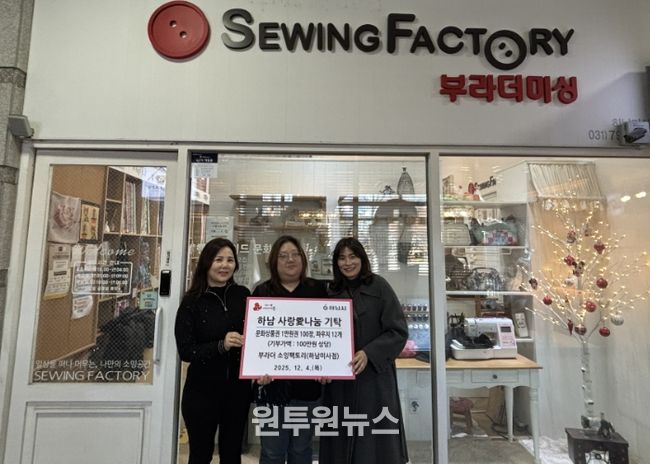 (원투원뉴스) 하남시 드림스타트는 12월 4일 부라더 소잉팩토리 하남미사점으로부터 문화상품권 100만원과 수제 생리대 파우치 12개를 전달받았다고 밝혔다.
