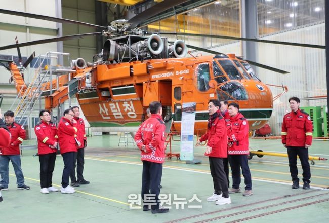 김진태 도지사는 산림항공기 운영현황, 정비체계, 격납고 등 주요 시설을 살펴보며 대응 체계를 면밀히 점검했고, 내년도 산불대응 정책과 추진 계획에 대한 계획을 청취했다.