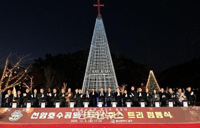 (원투원뉴스) 울산 남구는 5일 선암호수공원 녹색의 숲 잔디마당에서 ‘2025 선암호수공원 크리스마스 트리 점등식’을 열고 화려하게 불을 밝혔다.