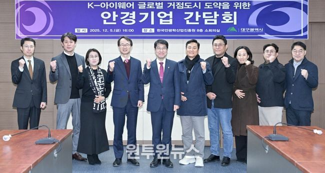 (원투원뉴스) 대구광역시는 12월 5일 오후 4시, 한국안광학산업진흥원 8층 소회의실에서 김정기 대구광역시장 권한대행 주재로 지역 안경산업의 혁신 성장 전략을 모색하기 위한 간담회를 열었다.