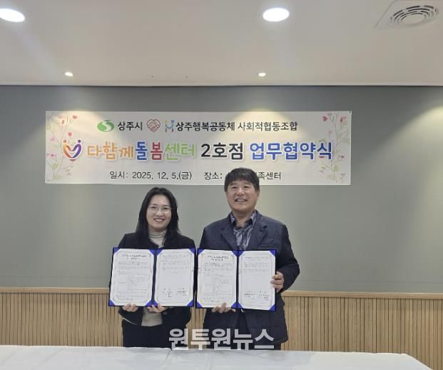 (원투원뉴스) 상주시는 12월 5일 상주시가족센터에서 상주시 다함께돌봄센터 2호점 위수탁 협약식을 개최하고, 수탁기관으로 상주행복공동체 사회적협동조합을 최종 선정하여 협약을 체결했다.