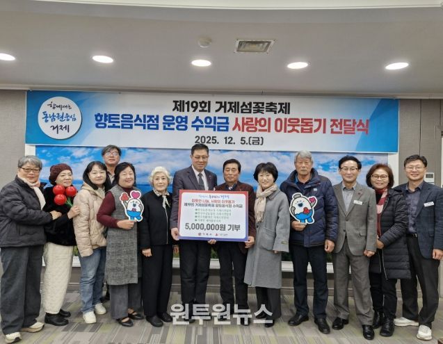 이번 성금은 제19회 거제섬꽃축제(지난 11월 1일~11월 9일) 기간 동안 4개 단체가 함께 운영한 향토음식점 수익금으로 마련된 것으로, 축제의 성공을 지역사회와 나누기 위한 뜻깊은 마음이 담겨 있다.