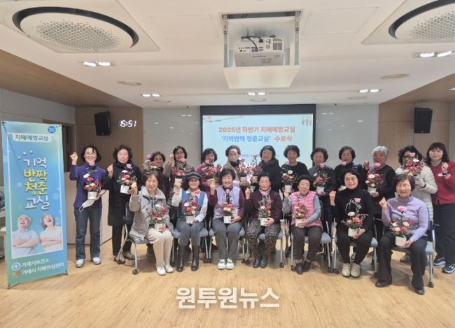 (원투원뉴스) 거제시치매안심센터는 지난 10월 15일 시작하여 매주 3회씩 총 23회에 걸쳐 진행된 2025년 하반기 치매예방교실‘기억반짝 청춘교실’이 12월 5일 참여자들의 큰 호응 속에서 마무리됐다고 밝혔다.