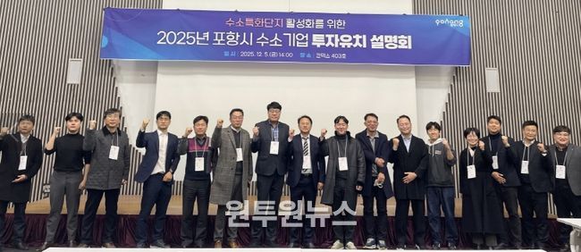 (원투원뉴스) 포항시는 지난 5일 일산 킨텍스에서 ‘2025년 수소특화단지 투자유치 설명회’를 개최하고 수소연료전지 관련 기업을 대상으로 포항 수소특화단지의 투자 환경과 기업 지원 정책을 소개했다.