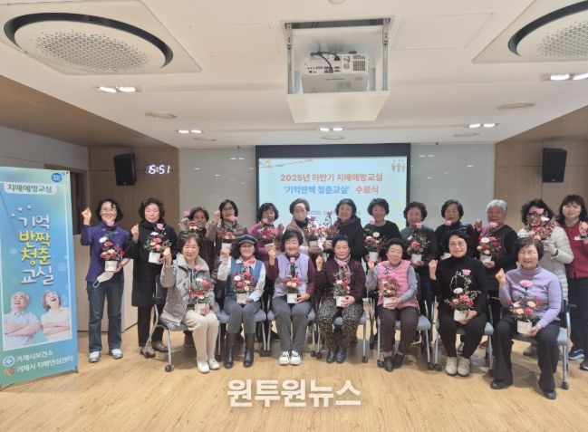 (원투원뉴스) 거제시치매안심센터는 지난 10월 15일 시작하여 매주 3회씩 총 23회에 걸쳐 진행된 2025년 하반기 치매예방교실 ‘기억반짝 청춘교실’이 12월 5일 참여자들의 큰 호응 속에서 마무리됐다고 밝혔다.