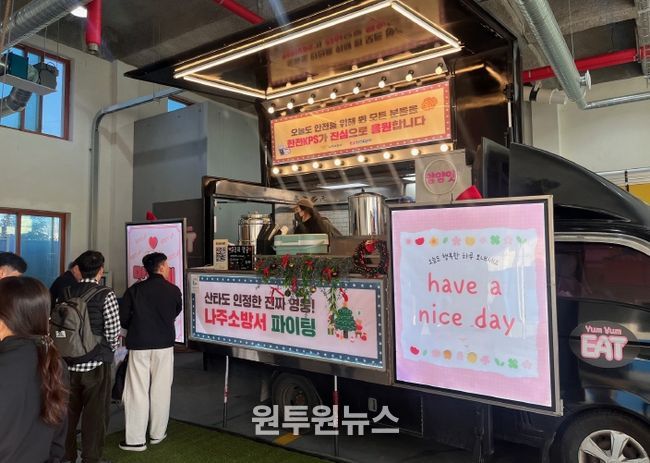 (원투원뉴스) 12월 5일, 나주소방서에 따뜻한 응원의 손길이 전해졌다. 한전KPS가 나주소방서를 방문해 시민의 안전을 지키기 위해 헌신하고 있는 소방공무원을 격려하고자 간식차를 지원했다.