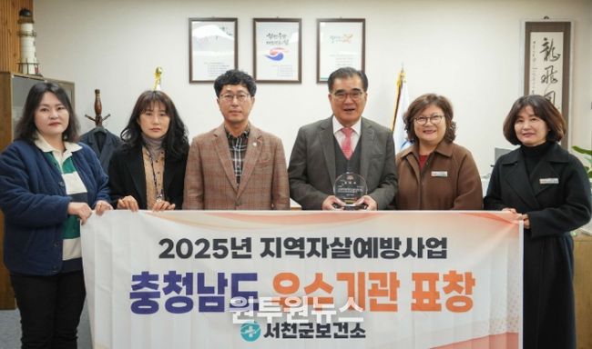 (원투원뉴스) 서천군은 지난 7일 ‘2025년 충청남도 지역자살예방사업 평가’에서 우수기관으로 선정돼 충청남도지사 표창을 받았다.