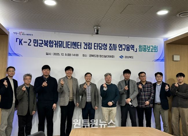 (원투원뉴스) 경상북도는 9일 경북도청 회의실에서 ‘K-2 민군복합커뮤니티 센터 건립 타당성 조사 연구용역’ 최종 보고회를 개최했다.