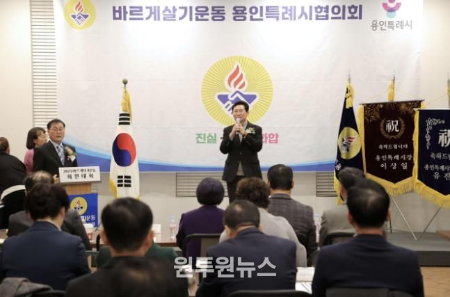 (원투원뉴스) 이상일 용인특례시장은 9일 저녁 페이지웨딩홀에서 열린 바르게살기운동 용인특례시협의회 녩년 회원대회 및 송년의 밤’행사에 참석했다.