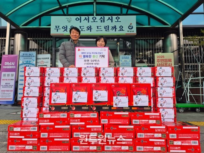 (원투원뉴스) 하남시 덕풍동 소재 대형차량 정비 전문업체 반석상사(대표 김해인)는 2025년 12월 10일 미사3동 행정복지센터를 방문해 관내 저소득층을 위한 라면 50박스를 기부했다. 이번에 전달된 라면은 100만원상당으로, 미사3동의 저소득계층 및 복지사각지대에 놓인 주민들에게 배부될 예정이다.