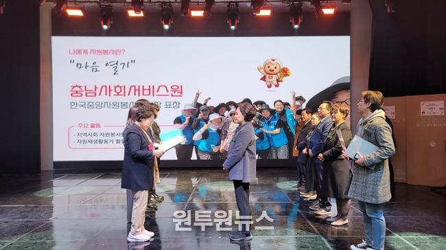 (원투원뉴스) 충남사회서비스원이 12월 10일 청운대학교 홍성캠퍼스에서 열린 ‘2025 홍성군 자원봉사자의 날 기념식’에서 한국중앙자원봉사센터가 수여하는 ‘협력나눔상’을 수상했다.