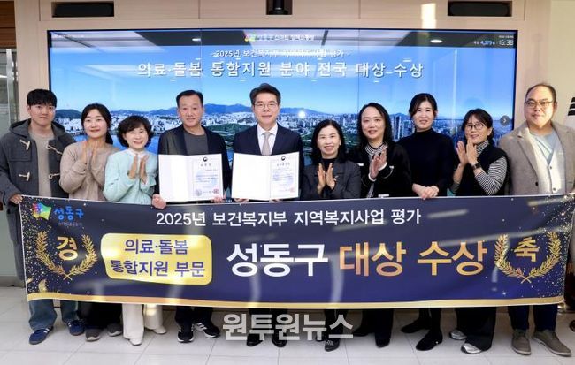 (원투원뉴스) 서울 성동구가 보건복지부 주관 '2025년 지역복지사업 평가‘에서 6관왕 달성에 더해 ‘통합돌봄’부문 전국 1위인 대상을 수상하며, 전국 최고의 복지 선도 지자체임을 입증했다고 밝혔다.