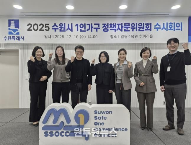 (원투원뉴스) 수원특례시는 10일 일월수목원 히어리홀에서 ‘2025년 수원시 1인 가구 정책자문위원회 회의’를 열고 2026년 1인 가구 지원정책 방향을 점검했다.