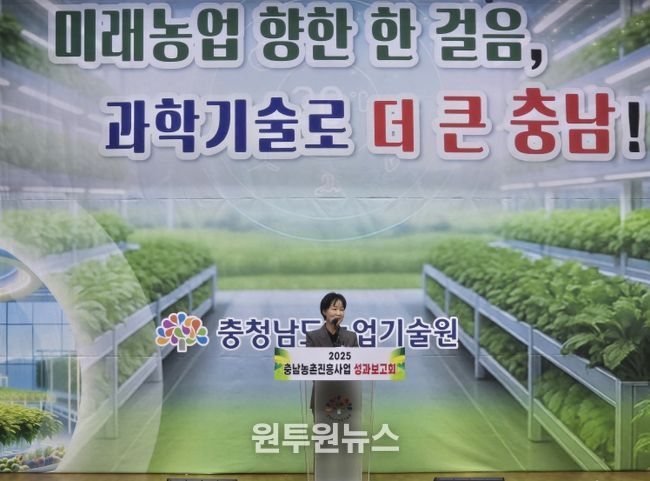(원투원뉴스) 충남도 농업기술원은 11일 농업기술원 대강당에서 농업인과 농촌진흥 관계자 등 300여 명이 참석한 가운데 ‘2025 충남농촌진흥사업 성과보고회’를 개최했다.