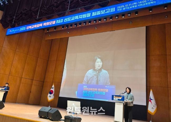 (원투원뉴스) 경기도교육청이 11일 남부청사 대강당에서 ‘2025 지역교육협력 특화모델 R&D 선도교육지원청 최종보고회’를 열고 특화모델 성과와 현장 적용 방안을 공유했다.