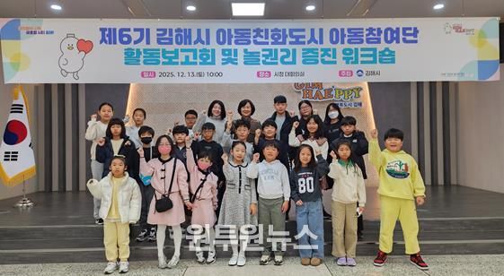 (원투원뉴스) 김해시는 지난 13일 시청 대회의실에서 ‘2025 아동참여단 활동보고회 및 놀권리 증진 워크숍’을 개최하고, 올해 진행된 아동참여단 활동 결과를 공유했다고 15일 밝혔다.