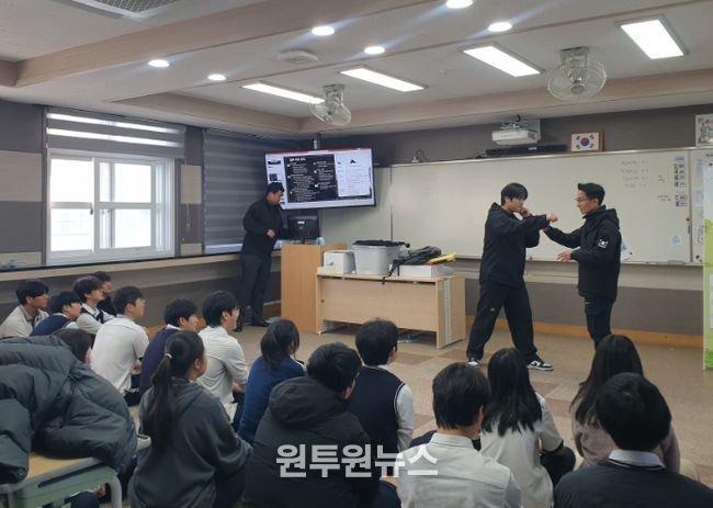 (원투원뉴스) 제주도교육청 송악도서관은 11일 안덕중학교에서 학교 지원 사업의 하나로 ‘학교 안의 진로 수업’을 운영했다.