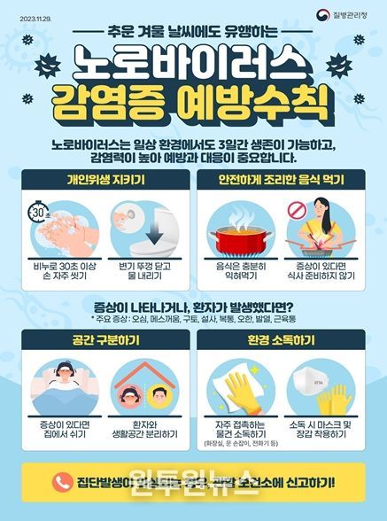 (원투원뉴스) 전북특별자치도는 15일 겨울철 노로바이러스 감염증이 증가함에 따라 개인 위생수칙을 철저히 지켜줄 것을 당부했다.