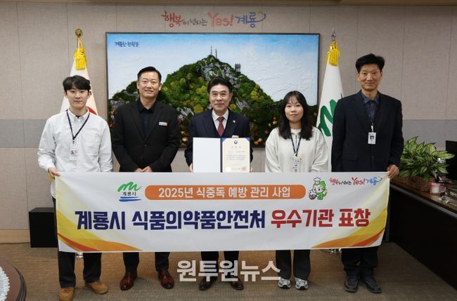 (원투원뉴스) 계룡시는 ‘2025년 식중독 예방관리 사업 평가’에서 우수 기관으로 선정돼, 지난 12일 식품의약품안전처가 주최한 ‘전국 식중독 예방관리 역량강화 워크숍’에서 식품의약품안전처장 표창을 수상했다고 밝혔다.