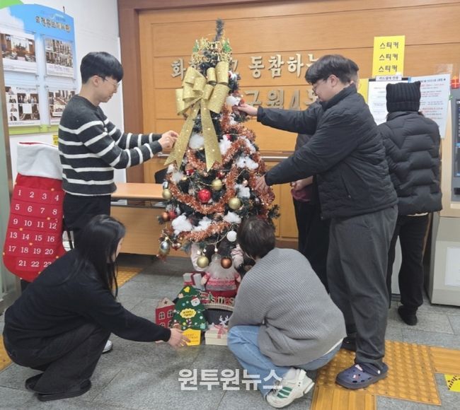 이번 크리스마스 장식은 민원실을 방문하는 주민들에게 연말의 기쁨과 따뜻함을 전달하기 위해 직원들이 모두 함께 참여해 꾸몄다.