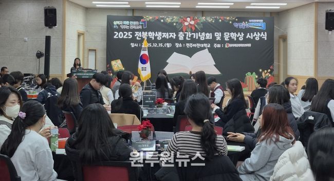 (원투원뉴스) 전북특별자치도교육청은 15일 오후 3시 전주비전대학교 컨벤션홀에서 ‘2025 전북학생 저자 출간기념회 및 문학상 시상식’을 개최했다.