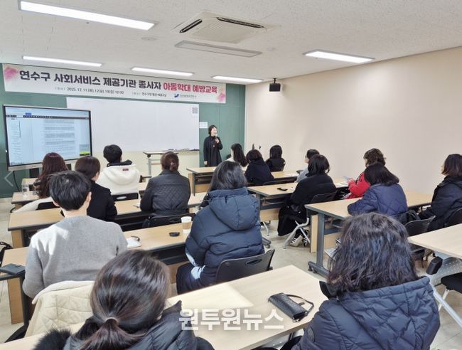 (원투원뉴스) 연수구는 아동 대상 사회서비스를 제공하는 기관 종사자를 대상으로 지난 11일과 12일 이틀간 아동학대 예방 교육을 했다.