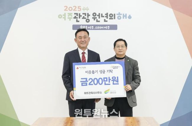 (원투원뉴스) 아트건축사사무소 홍성호 대표는 지난 15일 여주시를 방문하여 관내 저소득층을 위한 이웃돕기 성금으로 200만원을 기탁했다