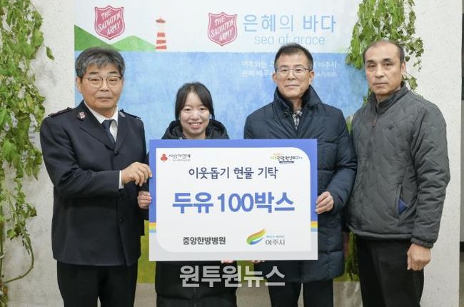 (원투원뉴스) 중앙한방병원에서는 지난 16일 여주시에 이웃돕기 현물로 130만원 상당의 두유 100박스를 기탁했다.