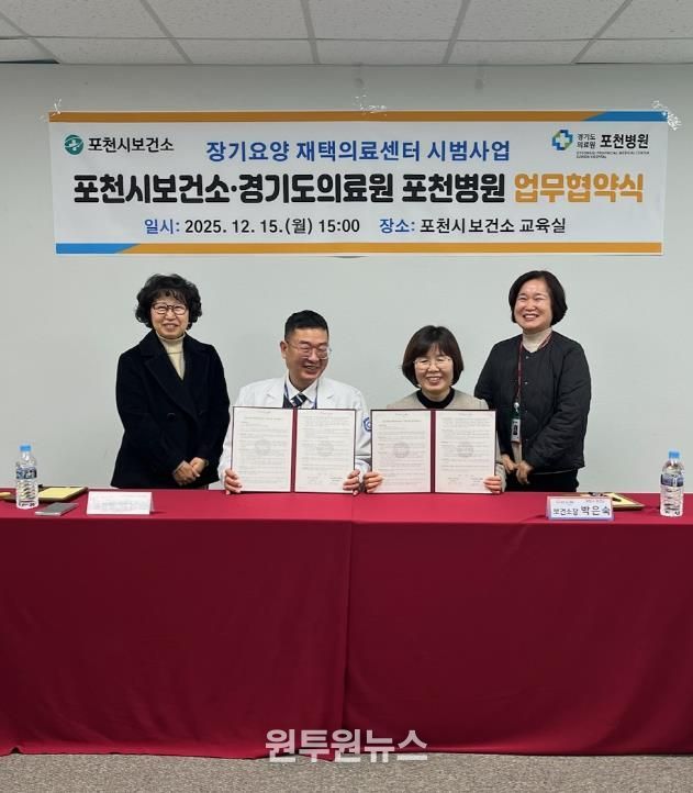 (원투원뉴스) 포천시보건소는 지난 15일 보건복지부가 추진 중인 ‘장기요양 재택의료센터 국가 시범사업’의 원활한 사업 추진을 위해 경기도의료원 포천병원과 업무협약을 재체결했다고 밝혔다.