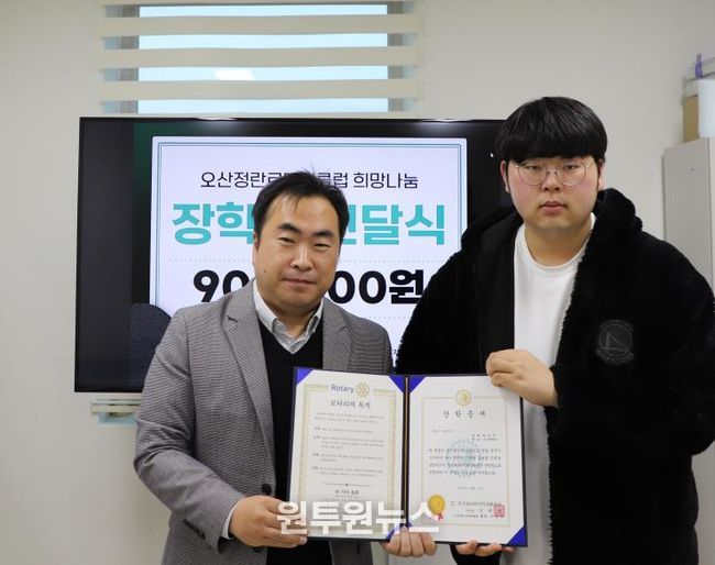 (원투원뉴스) 오산장애인종합복지관은 지난 15일 오산정란로타리클럽으로부터 경제적 어려움을 겪는 장애가정 학생 지원을 위한 장학금 90만 원을 기탁받고 전달식을 개최했다고 밝혔다.