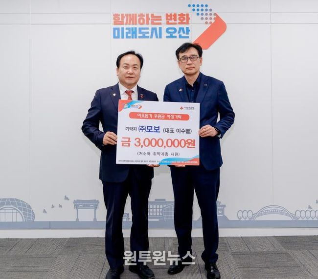 (원투원뉴스) 오산시는 지난 16일 ㈜모보로부터 지역 내 저소득 취약계층 지원을 위한 후원금 300만 원을 기탁받았다고 밝혔다.