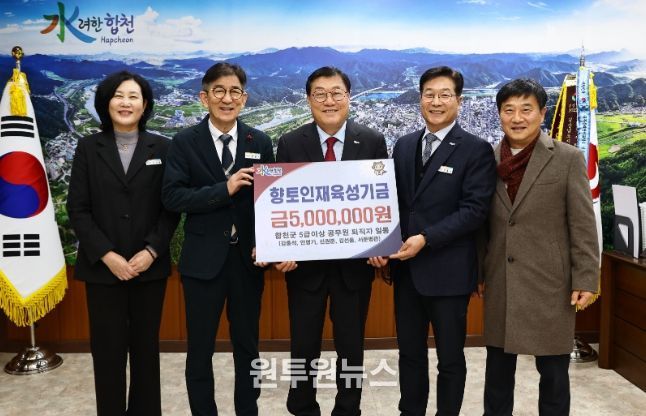 퇴직자 일동은 “공직에 재직하는 동안 지역 인재 육성의 중요성을 누구보다 절감해 왔다”며 “새롭게 출범한 인재육성재단이 지역 교육 발전의 구심점 역할을 하기를 바라며, 합천의 학생들이 더 나은 환경에서 학업과 진로를 준비하는 데 작은 힘이나마 보태고 싶었다”고 전했다.