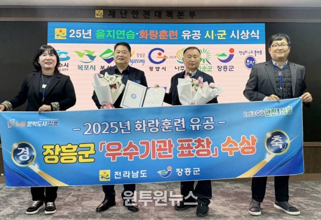 (원투원뉴스) 장흥군은 ‘2025년 화랑훈련 우수기관’으로 선정돼 전라남도로부터 기관 표창을 수상했다.