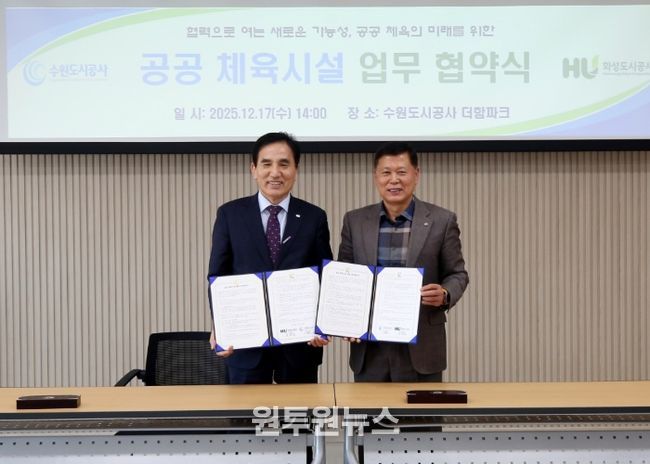(원투원뉴스) 화성도시공사는 12월 17일 오후 2시, 수원도시공사 더함파크 3층에서 수원도시공사와 함께 공공 수영시설 강사운영 안정화를 위한 '공공 수영시설 협의체 업무협약(MOU)'을 체결했다고 밝혔다.