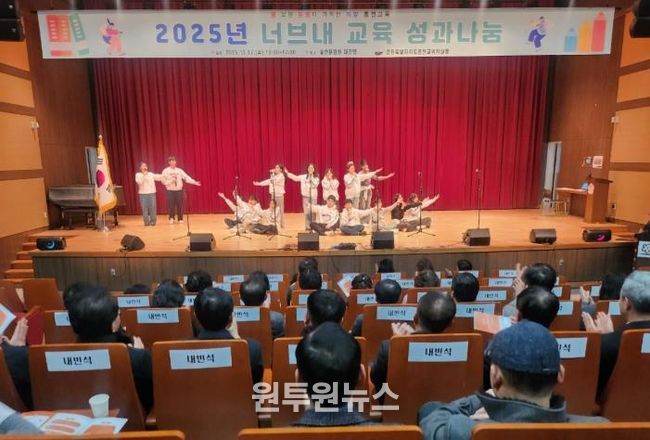 (원투원뉴스) 홍천교육지원청은 12월 17일 홍천문화원 대강당에서 ‘2025년 너브내 교육 성과 나눔’ 행사를 열고, 한 해 동안 추진한 홍천교육의 주요 성과를 공유하는 한편 2026년 홍천교육의 방향을 함께 모색하는 시간을 가졌다.