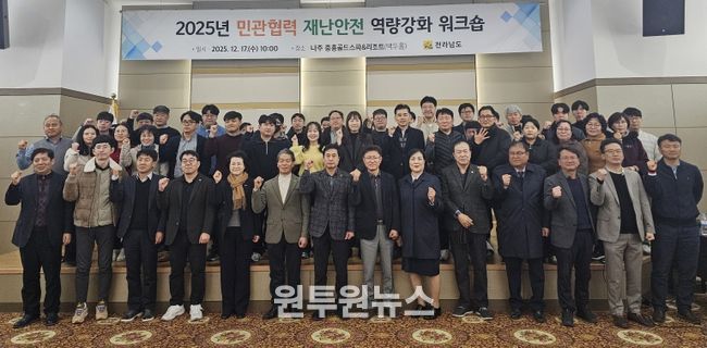 (원투원뉴스) 전라남도는 17일 나주 중흥골드스파&리조트에서 2025 민관협력 재난안전 역량강화 워크숍을 열고 지역 대규모 재난 발생시 신속한 대응을 위한 민관협력을 더욱 강화키로 결의했다고 밝혔다.