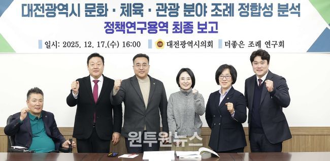 (원투원뉴스) 대전시의회 의원연구회 ‘더 좋은 조례 연구회’(회장 김영삼 의원)는 17일 시의회 공감실에서 '대전광역시 문화·체육·관광 분야 조례 정합성 분석 연구' 최종보고회를 개최했다.