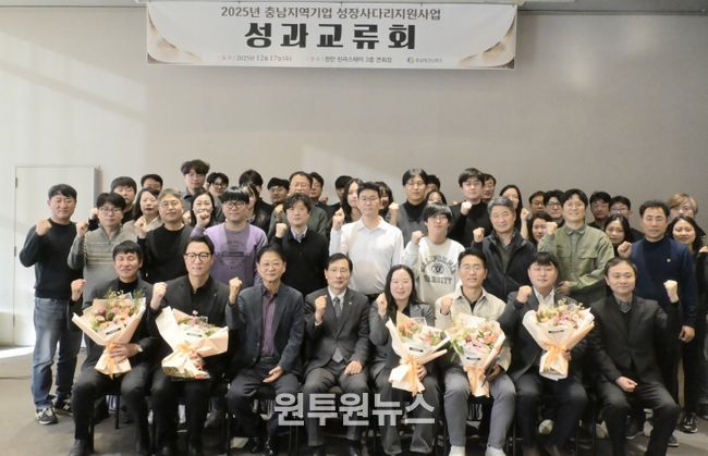 (원투원뉴스) (재)충남테크노파크는 17일 천안 신라스테이에서 ‘2025년 충남지역기업 성장사다리 지원사업 성과교류회’를 개최하고, 2025년도 성장사다리 지원사업을 통해 창출된 성과와 우수기업 사례, 2026년 사업 방향을 공유했다고 밝혔다.