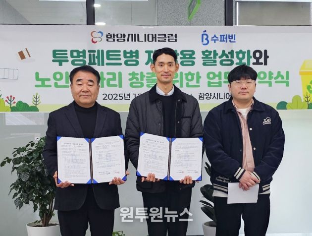 (원투원뉴스) 함양시니어클럽은 자원순환 실천 활동 지원 및 지속 가능한 노인일자리 창출을 위해 AI 로봇기술 기반 자원순환 기업 수퍼빈㈜과 손을 맞잡고 지난 16일 상호 유기적인 협력을 위한 업무협약(MOU)을 체결했다고 밝혔다.