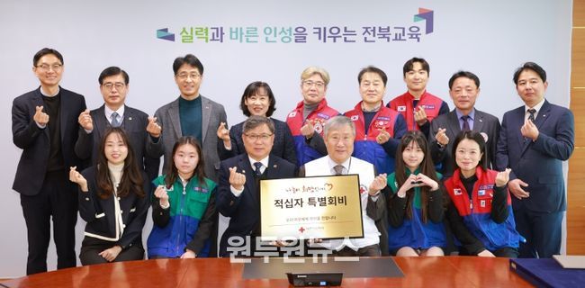 (원투원뉴스) 전북특별자치도교육청은 18일 대한적십자사 전북특별자치도지사에 특별회비 300만 원을 기탁했다.