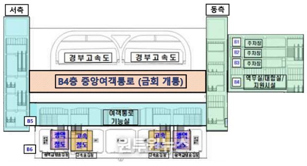 중앙여객통로는 동탄역 지하 4층에 위치한 통로로, #3·4번 서측 출입구에서 매표소 및 롯데백화점 연결 통로까지 직접 연결된다. 이번 개통으로 그간 우회 동선을 이용해야 했던 이용객들의 불편이 크게 해소될 것으로 기대된다.