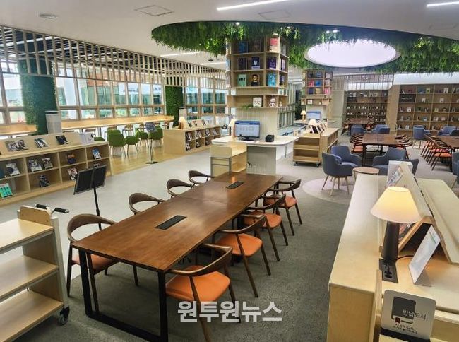 가장 큰 특징은 ‘모두의 서재’ 신설이다. 더 나은 도서 환경 서비스를 제공하기 위해 기존의 관장실, 사무실, 수서실 등 사무 공간과 로비를 통합해 100석 규모의 개방형 자료실을 마련했다.