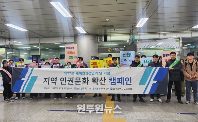 (원투원뉴스) 광주도시공사(사장 김승남)는 지난 10일 서구 상무역에서 광주교통공사와 합동으로 인권문화 존중 캠페인을 펼쳤다고 밝혔다.