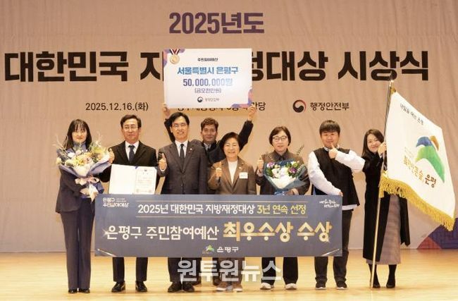 이번 수상으로 은평구는 지난해에 이어 3년 연속 주민참여예산제 우수 지방자치단체로 선정되는 성과를 거뒀으며, 재정 인센티브 5천만 원을 확보했다.